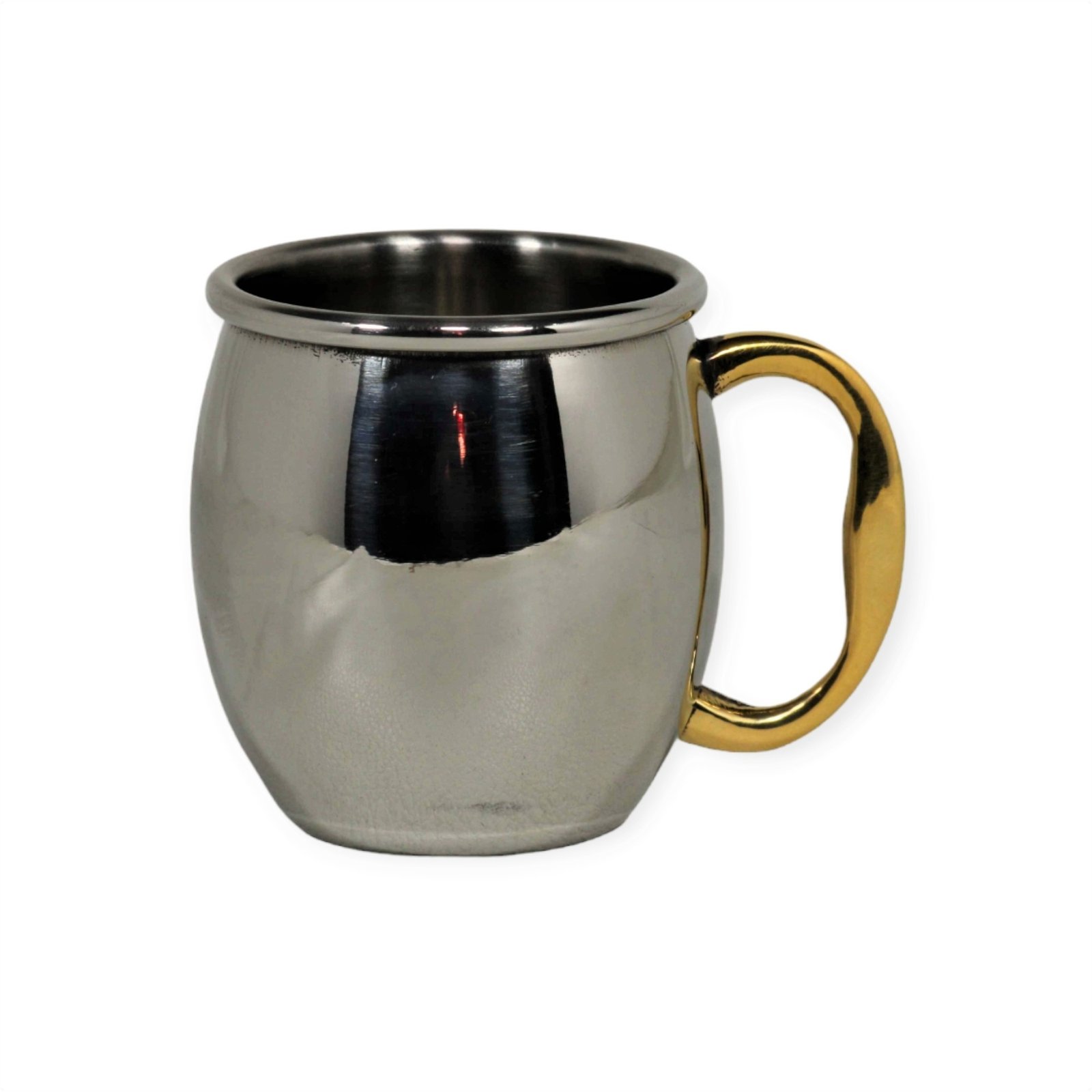 Introducing the 2oz Barrel Shaped Stainless Steel Shot Glass: Crafted from stainless steel and featuring brass handle, this shot glass holds 2 ounces of your favorite spirits, adding a touch of timeless elegance to your drinking experience. Perfect for sipping fine liquors or measuring ingredients in style. Savor the spirit of Moscow Mule with every sip!