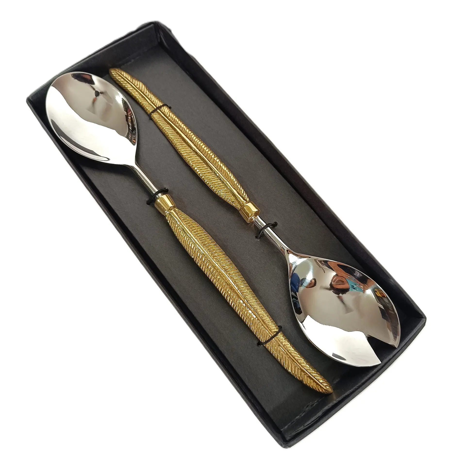 Upgrade your business with our elegant salad server set, combining the warmth of natural brass and the strength of stainless steel. The brass casted handle in leaf shape gives it the natural touch and glamourize the whole server. The high quality construction creating a sophisticated and functional product for your customer. Perfect for serving salads, desserts, or any other dish.